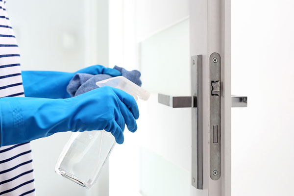 Regularly cleaning door handles, desks and shared equipment.